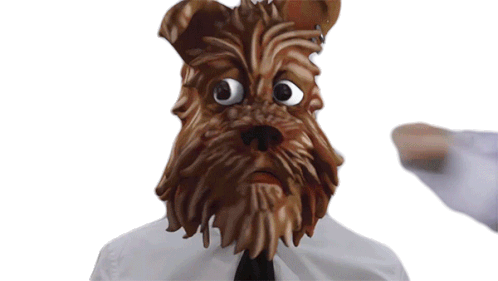 A fist punches a person wearing a brown dog mask, reminiscent of Arcade Fire's album art, creating a sudden impact.