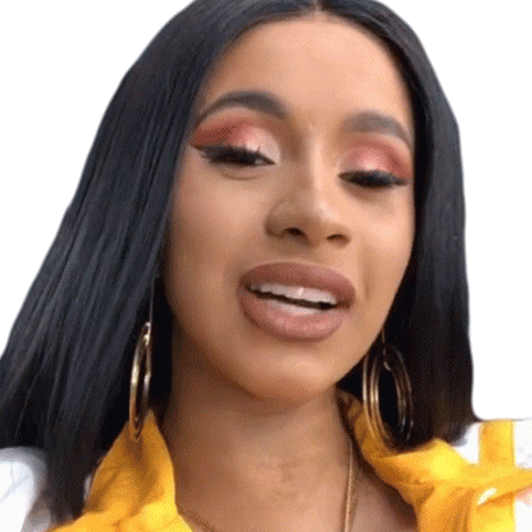 Cardi B with a skeptical expression, then a slight smile, featuring the prominent caption "Pussy".