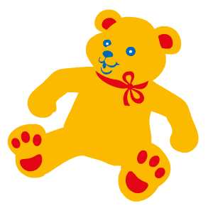 A cheerful yellow Pustebär teddy bear winks and blows soap bubbles, spreading joy with its playful animation.