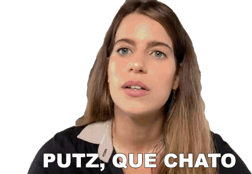 Maria Bopp from Porta dos Fundos expresses disappointment, saying "Putz, que chato" with a relatable, slightly annoyed expression.