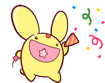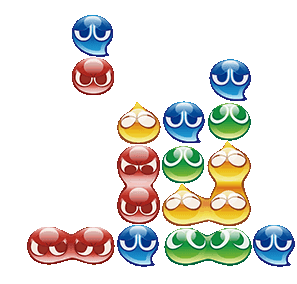 Animated Puyo Puyo sticker showing a colorful combo chain with blue, yellow, and green Puyos and red ojama puyos.