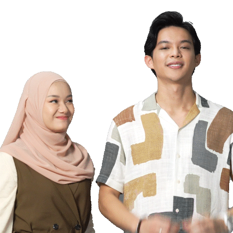 A happy couple from Prime Video, smiling and forming heart gestures with their hands, expressing love and affection.