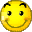 A pixelated yellow smiley face wearing headphones, depicted in a classic pixel art style.