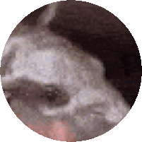 A close-up view of Moodeng the pygmy hippo, showing its dark skin and subtle movements in a circular frame.