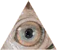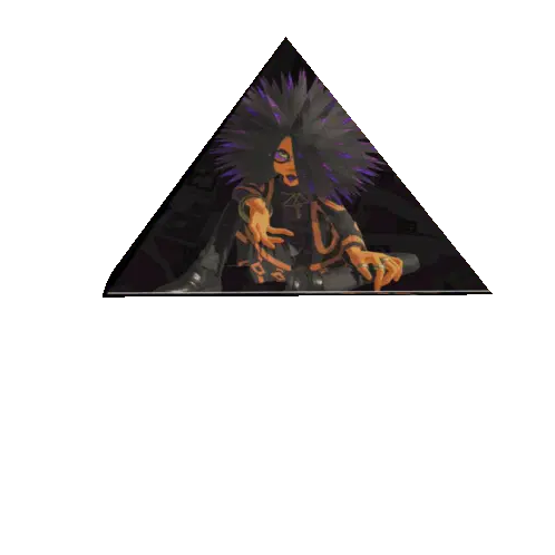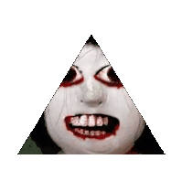 A rotating pyramid featuring multiple creepy, pale faces with bloodshot eyes and bloody, toothy mouths.