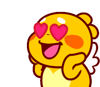 Qoobee, the cute yellow bear, shows affection with heart eyes and a big smile, expressing deep love and happiness.