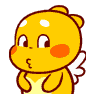 Qoobee, the yellow winged character, shows a scared or surprised expression with wide eyes and open mouth.