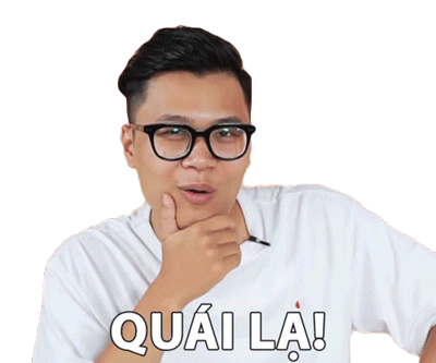 Hải Sơn, wearing glasses and a white shirt, makes a curious expression with 'QUÁI LẠ!' text, transitioning to a smile.
