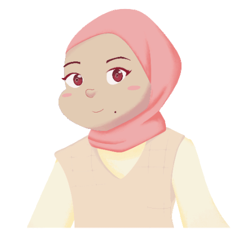 A cute cartoon girl wearing a pink hijab winks playfully, showing a star on her cheek and a small mole.