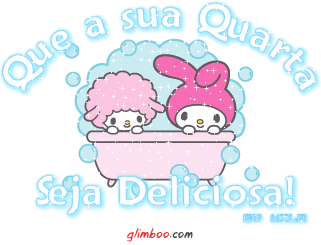 A cute cartoon sheep and bunny wish you a delicious Wednesday in this nostalgic Orkut-style animated sticker.