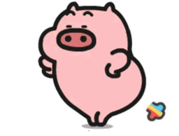 Quby, the adorable pink cartoon pig, stands and waves cheerfully, perfect for a friendly greeting.