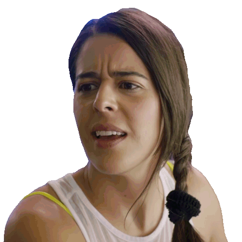 A woman with a braid looks confused and surprised, mouth slightly open, expressing bewilderment and questioning.