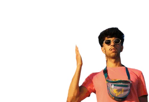 Bejo fanning himself in a 'Que Calor' sticker, expressing intense heat with a cool, casual vibe.
