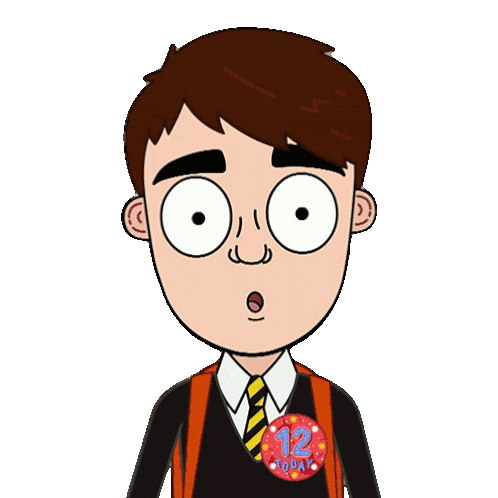 Joe Connolly, wearing his school uniform and a '12 TODAY!' badge, reacts with wide-eyed shock and a jaw drop.