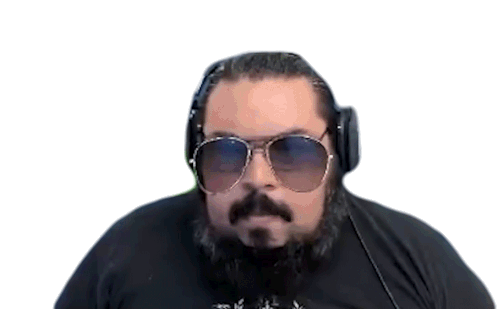 Agbean3r, wearing sunglasses and headphones, looks confused and tilts his head, expressing 'Que Raro'.