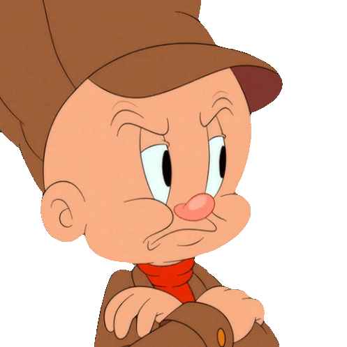 Elmer Fudd looks confused and angry, asking "¿QUÉ SE SUPONE QUE SIGNIFICA ESO?". Expresses bewilderment or frustration.