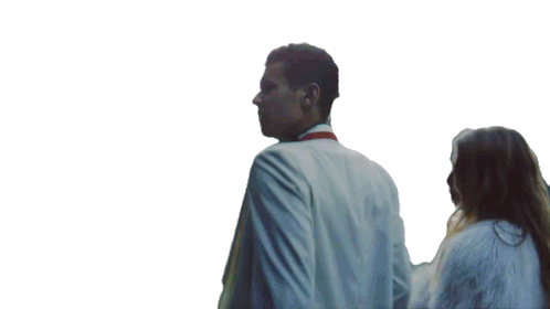 Aron and a woman walk with serious expressions, conveying anger and upset, as if in a fight or disagreement.