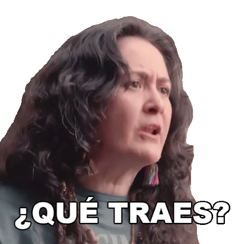 Cheryl Sue looks confused and upset, asking '¿Qué Traes?' in this expressive sticker.