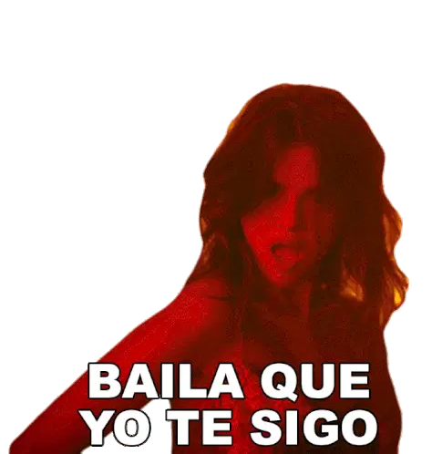 Selena Gomez dances gracefully, declaring 'Que Yo Te Sigo' (I'll follow you) in this captivating red-hued sticker.