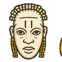 a cartoon drawing of a man 's face with dreadlocks and a crown on his head .