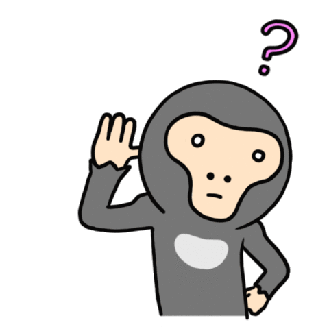 A cute, confused monkey character with a question mark above its head, cupping its ear as if asking 'What?' or 'Why?'.