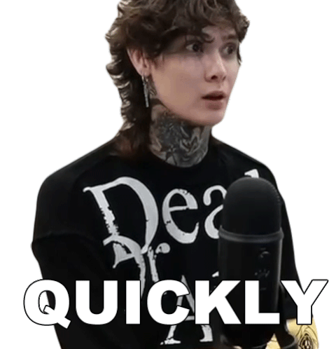 Tim Henson, a musician, speaks the word 'Quickly' into a microphone, with the text appearing on screen.