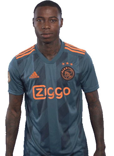 Quincy Promes, an Ajax football player, makes a distinctive "call me" gesture with his hand while looking at the camera.