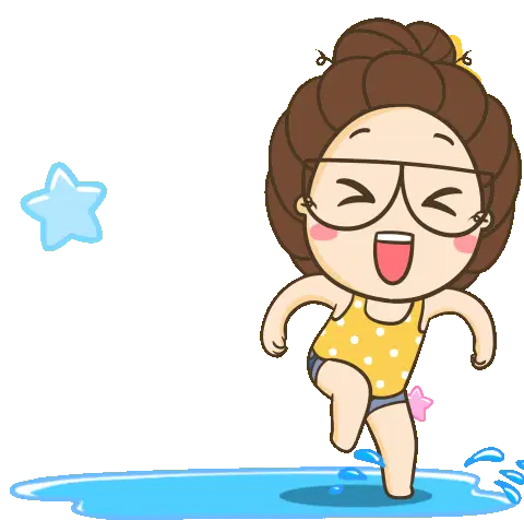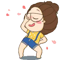 Raamking Starmaker character, a cute cartoon girl with glasses and suspenders, dancing playfully amidst colorful bubbles.