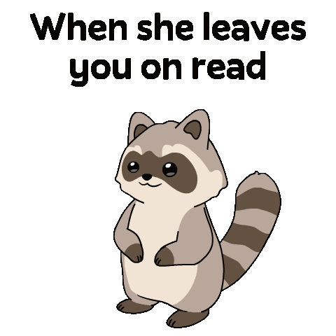 An adorable cartoon raccoon reacts from happy to angry after being left on read, showing the frustration of ghosting.