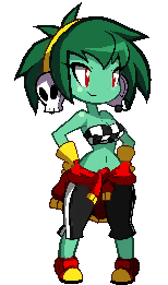 Race Rotty, the zombie character from Shantae, performs a playful sway with hands on hips, showcasing her confident and energetic personality.