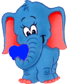 A blue elephant with red ears dances, holding a blue heart, set to a mix of radio, disco, and pop music.