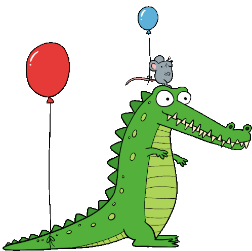 Raf Rafs' cheerful alligator and mouse celebrate with balloons, perfect for birthdays and happy occasions. A cute and festive sticker.