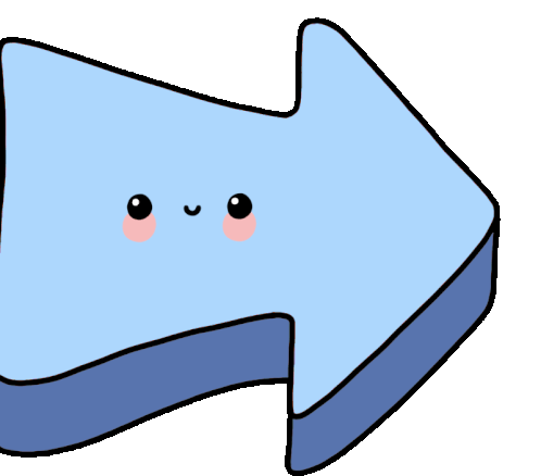 Raf Rafs' cute animated blue 3D arrow sticker, wiggling and pointing right with a sweet face.