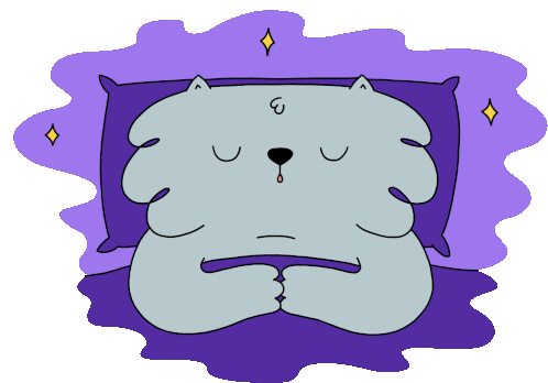 A cute animated sticker by Rafs84 featuring a sleepy cat-like creature snoring peacefully on a pillow, with stars twinkling.