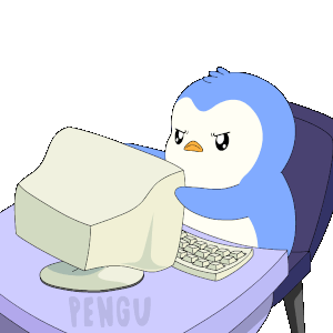 Pengu the penguin expresses extreme frustration and rage while working on a computer, throwing its head back in exasperation.