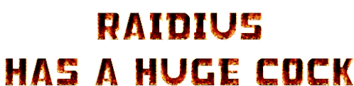 A bold text sticker declaring 'Raidius has a huge cock' on a white background, featuring explicit content.