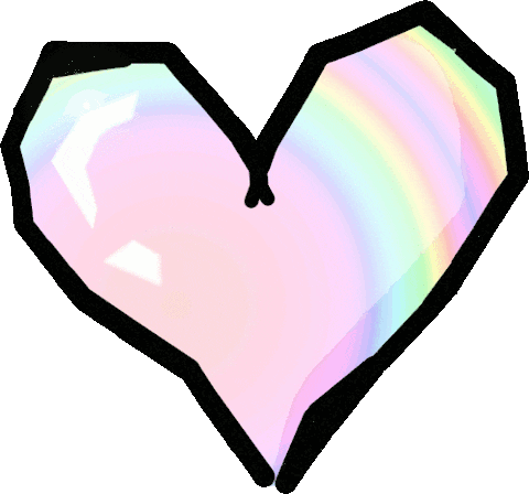 Animated sticker featuring a vibrant rainbow heart with a black outline, subtly sparkling against a white background.