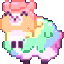 A charming pixel art animation of a rainbow-colored llama rolling playfully. Its vibrant fur and cute expression make it an adorable sticker.