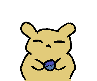 Rainworld Gourmand, the chubby creature, happily holds a shimmering blue and purple orb in its paws.