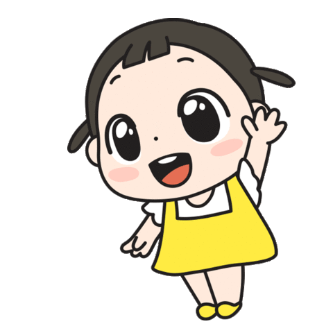 A cheerful cartoon girl with big eyes and a yellow dress enthusiastically raises her hand, ready to answer or participate.
