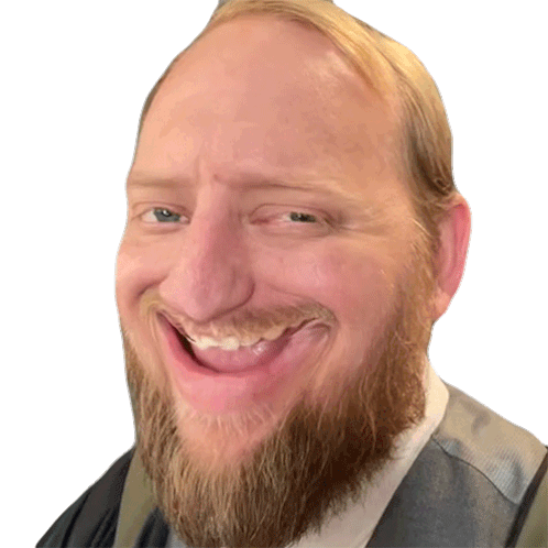 Dj Hunts smiles broadly with raised eyebrows and a slight wink, conveying a humorous and knowing expression.