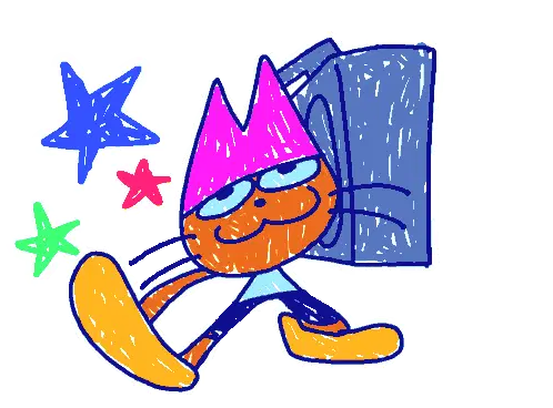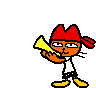 Captain Cat Kit from Rakugakids plays a trumpet with pink and yellow musical notes in this animated sticker.
