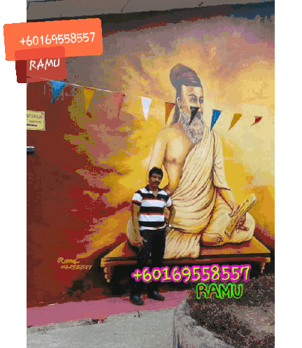 Ramu Sivanes showcases his vibrant mural art, featuring the revered Thiruvalluvar, alongside other captivating paintings.