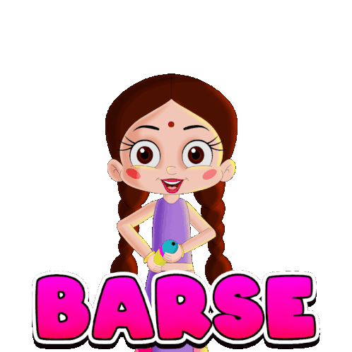 Chutki from Chhota Bheem winks and smiles, holding a pichkari, with 'Rang Barse' for Holi celebrations.