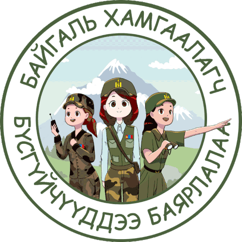 An animated sticker thanking female nature rangers, featuring three women in uniform against a mountain backdrop for WWF Mongolia.