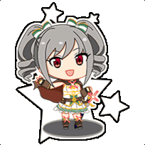 Ranko Kanzaki from Idolmaster in chibi form, standing on a star with a cheerful expression.