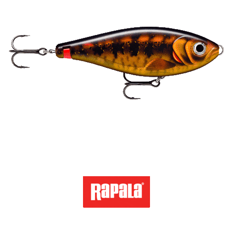 An animated Rapala X-Rap Haku fishing lure, showcasing its design and the subtle movement of its attached hooks.