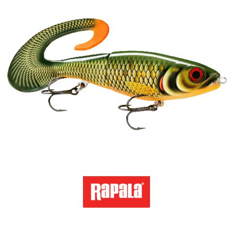 A detailed sticker of the Rapala X-Rap Otus fishing lure, featuring its unique segmented body and curly tail design.