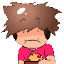 Pixel art sticker featuring a boy with messy hair, holding a piece of cake, inspired by Rapparep Lol and Baldi's Basics.