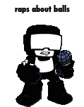 Tankman from Friday Night Funkin performs a rap about balls in this pixel art animation, holding a microphone.